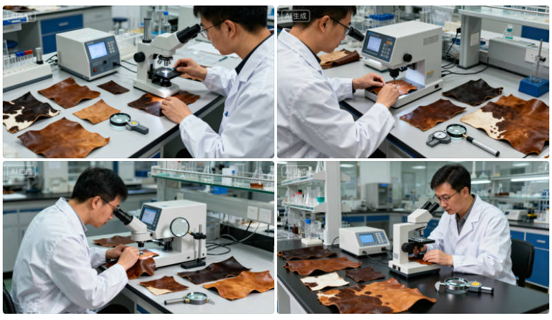 视觉检查: 通过肉眼观察牛皮的外观特征,如颜色、纹理等,进行初步判断。