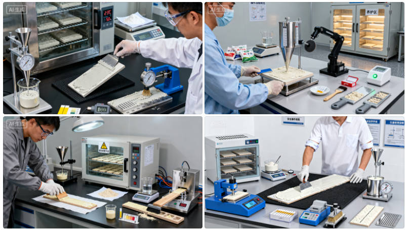 • 粘结强度测试:测试腻子粉与基材的粘结强度。