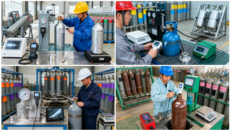 - 泄漏检测:使用气体探测仪或浸泡法等方法检测气瓶是否存在泄漏现象。