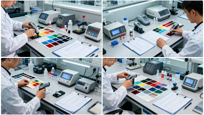 色差测试:使用色差仪测量车漆颜色与标准色的差异。
