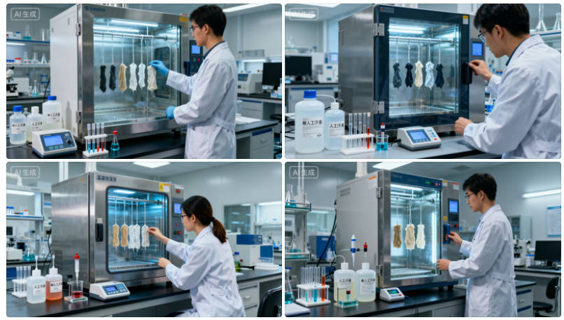 - 化学物质测定法:使用化学分析仪器测定人工汗液和产品中特定化学物质的含量。